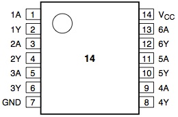First, we need to introduce one more 7400-series IC, the 74HC14 hex inverter.