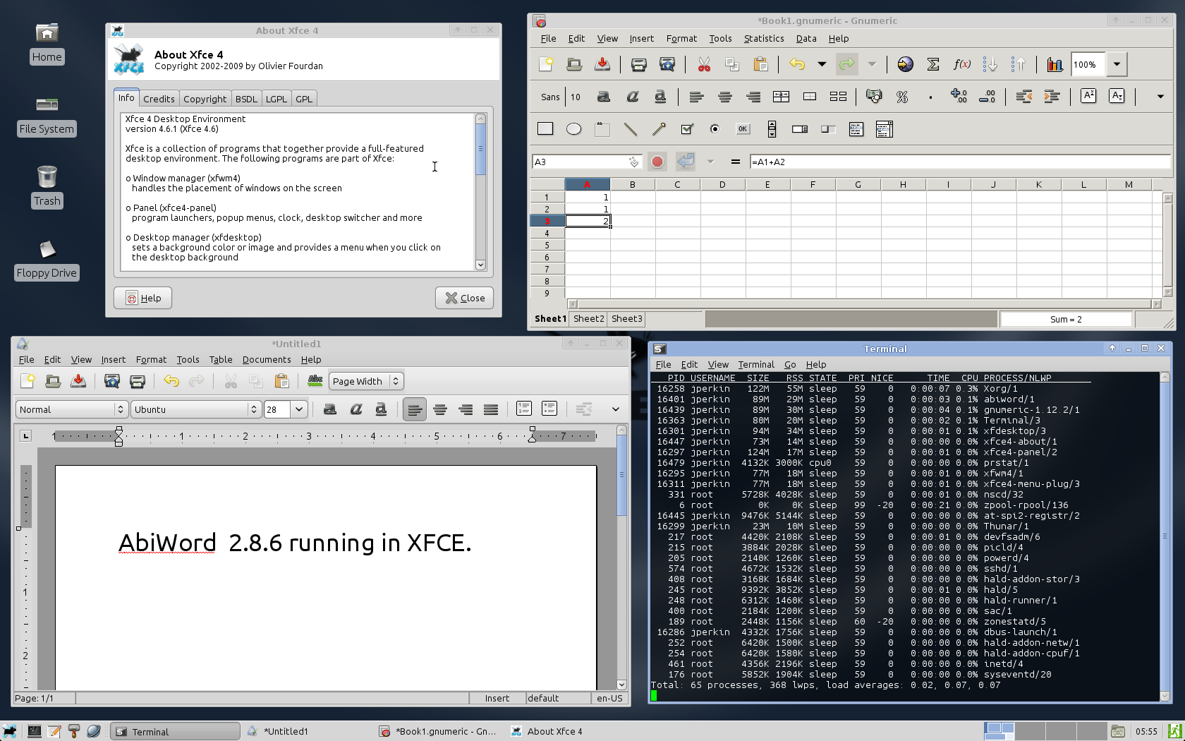 /opt/local/bin/startkdeXFCE 4.6 with Gnumeric and Abiword